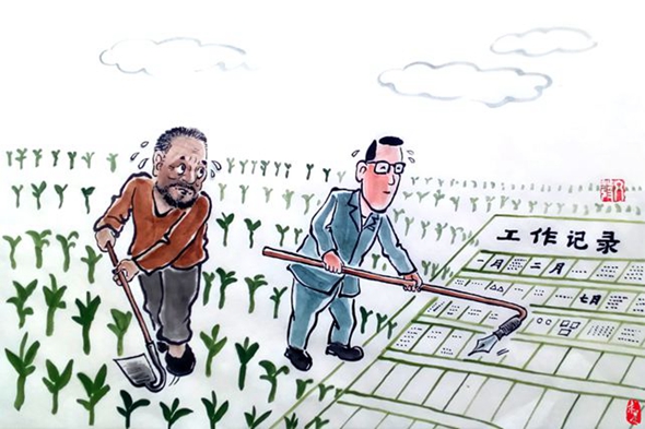 倡导“工作留痕”的初心本是为了督促工作落实。然而,一段时期以来,一些地方和单位却“各炒各的菜”,有时候为了应付上级检查,挖空心思编材料、造报表,没有痕迹的也要“造痕迹、补痕迹”,急急忙忙补学习笔记,迎检资料论“公斤”。看似“岁岁年年花不同”,实际却是“年年岁岁花相似”。因此,“工作留痕”一旦过度,就本末倒置,偏离了初衷,成了“痕迹主义”。