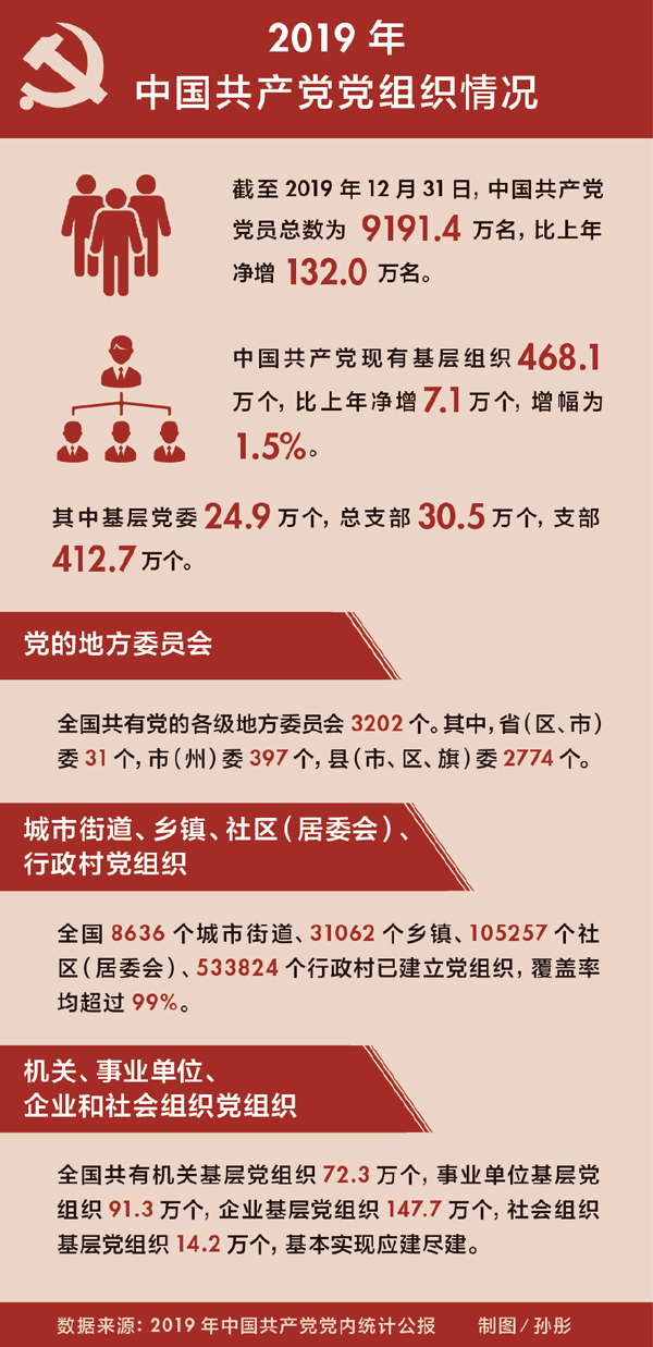 党的力量来自组织,党的全面领导、党的全部工作要靠党的坚强组织体系去实现。在《贯彻落实新时代党的组织路线,不断把党建设得更加坚强有力》这篇重要讲话中,习近平总书记深刻阐明了党的组织优势。总书记指出:我们党建立了包括党的中央组织、地方组织、基层组织在内的严密组织体系,其中地方党委3200多个,党组、工委14.5万个,基层党组织468.1万个。“这是世界上任何其他政党都不具有的强大优势。”