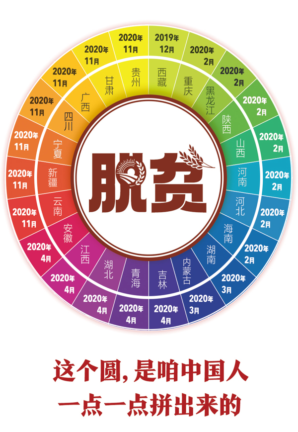 2020年11月23日,贵州省宣布最后9个贫困县退出贫困县序列。至此,国务院扶贫办确定的全国832个贫困县全部脱贫摘帽。这是22个省份宣布贫困县“清零”的时间示意图。 央视新闻供图