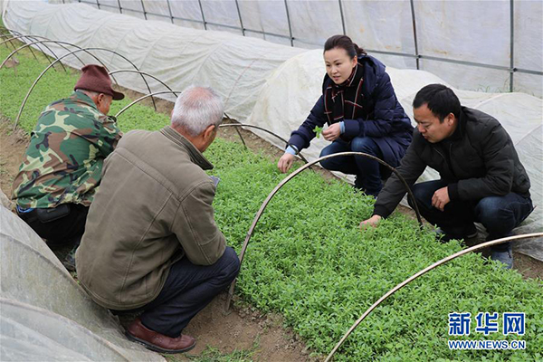 江西资溪县新月村第一书记兰念瑛(右三)在新月村宣讲中央精神(2018年2月27日摄)。新华社发(吴志贵 摄)