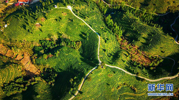 这是江西省资溪县嵩市镇逸沁茶业基地(2018年3月28日无人机拍摄)。 新华社发(吴志贵 摄)
