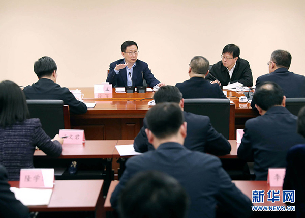 3月26日,中共中央政治局常委、国务院副总理韩正到国家医疗保障局调研并主持召开座谈会。 新华社记者刘卫兵摄