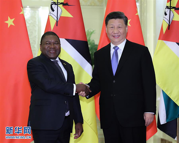 习近平指出,欢迎总统先生来华出席第二届“一带一路”国际合作高峰论坛。在本届论坛上,各国领导人将本着共商共建共享原则,讨论发展政策对接、基础设施互联互通、可持续发展等共同关心的议题,为促进世界经济增长、推动国际经济合作作出更大贡献。莫桑比克是古代海上丝绸之路的重要一站,近年来积极参与共建“一带一路”。双方已经就共同推进“一带一路”合作规划达成一致,要致力于推动互利合作提质增效,加强人文交流合作,让中莫“同志加兄弟”的传统友谊不断得到继承和发扬。