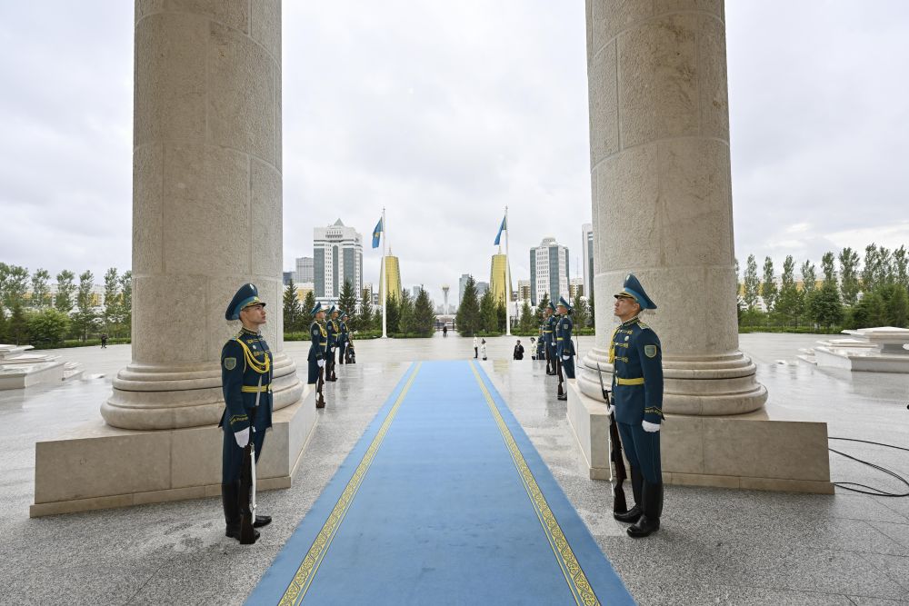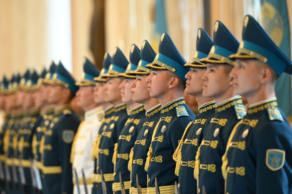 当地时间3日,国家主席习近平在阿斯塔纳出席哈萨克斯坦总统托卡耶夫举行的欢迎仪式。
