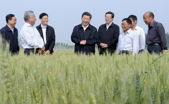 2014年5月9日,习近平在河南省开封市尉氏县张市镇高标准粮田察看小麦长势。新华社记者 张铎摄