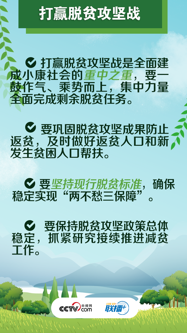 如何坚决如期完成脱贫攻坚任务,坚决补上全面小康“三农”领域短板,切实发挥好“三农”压舱石作用?本次中央农村工作会议进行了具体部署,央视网《联播+》划重点,与您一起学习。