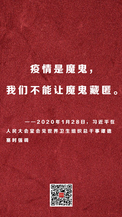 【编者按】近日,针对新型冠状病毒感染的肺炎疫情防控工作,习近平在多个场合重磅发声,向亿万中国人民传递了必胜的信心与决心。选取其中6句金句,制作了高清海报壁纸,为广大网友加油打气。