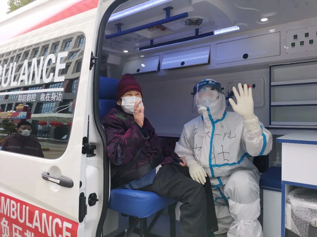 在97岁的付女士的感谢声中,协和医院的转运工作人员缓缓将她抱起,放入负压救护车送回家里进行隔离观察。1月29号入院,到现在正好一个月。