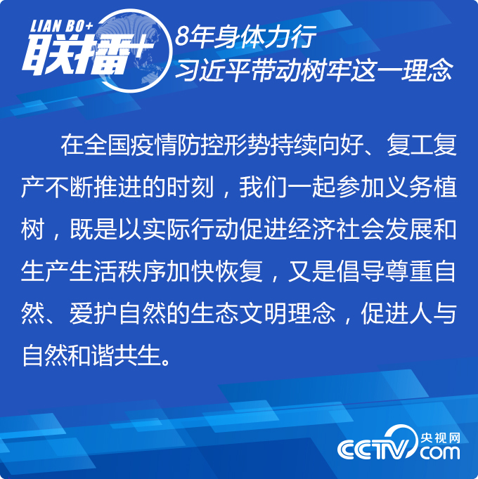 植绿护绿,一年接着一年。今年已经是习近平作为总书记参加首都义务植树活动的第8年。央视网《联播+》同您一起聆听总书记的殷殷叮嘱,从自己做起、从现在做起,为祖国大地绿起来、美起来尽力。
