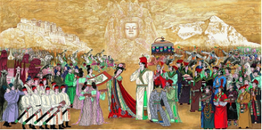 唐贞观年间,唐太宗将宗室女文成公主嫁给吐蕃赞普松赞干布。文成公主进藏带去了大批工匠,许多工艺品、谷物、菜籽、药材、茶叶以及大量医药、佛教等方面的书籍,大大促进了吐蕃经济文化的发展与进步,密切了唐与吐蕃的文化交流。文成公主深受藏族人民的尊敬与爱戴,至今,藏族人民中间还流传着众多歌颂文成公主的故事与诗歌等。