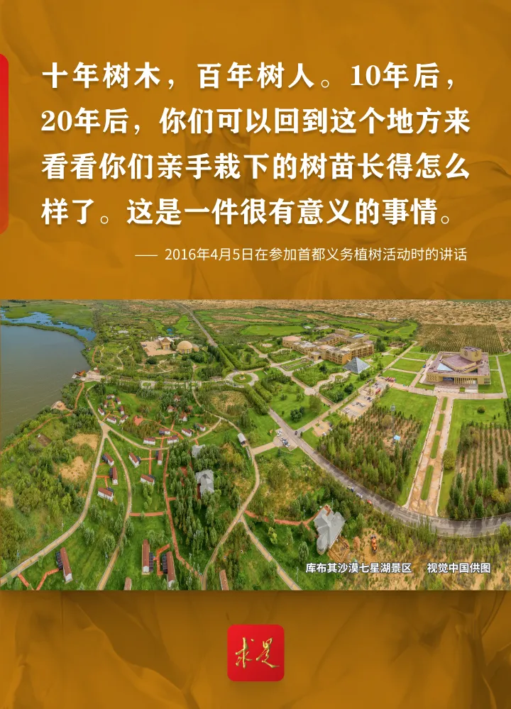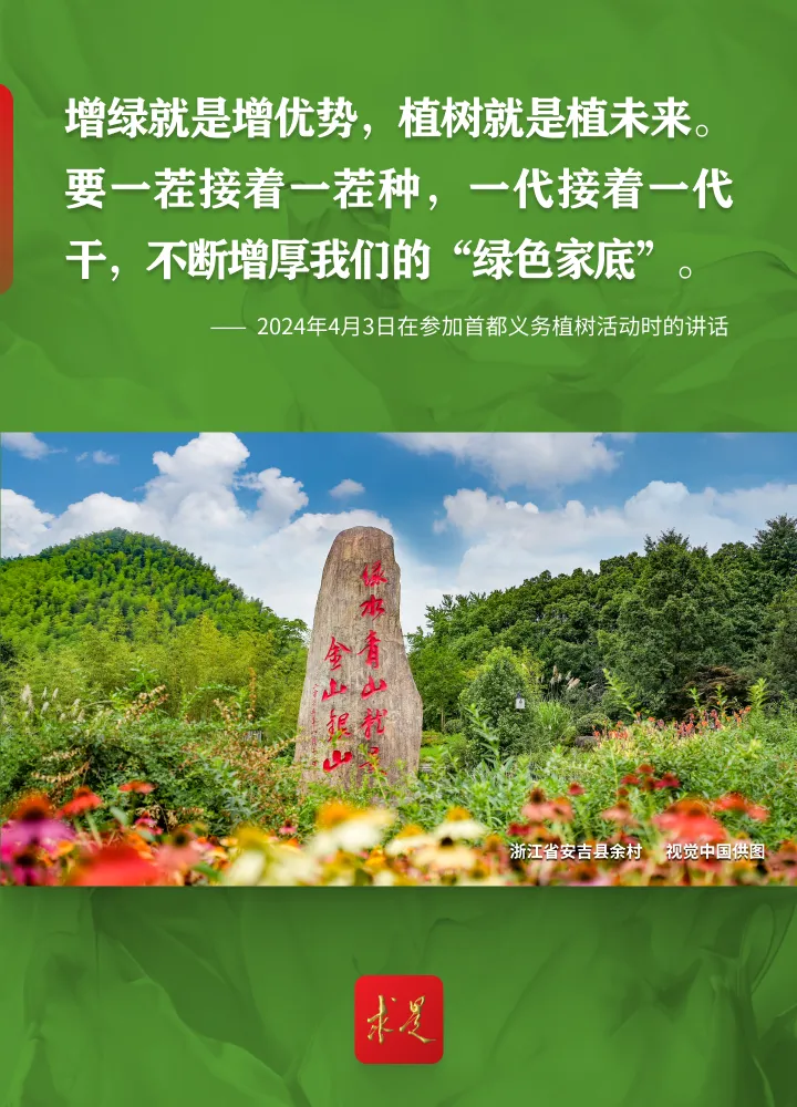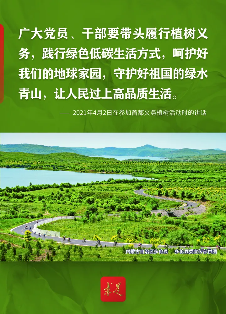 编者按:2024年4月3日上午,习近平总书记在参加首都义务植树活动时强调,清明前后,神州大地处处生机盎然,正是植树的好时节。今天我们一起种树,就是要号召大家都行动起来,积极参与植树造林,人人争当绿色使者、生态先锋,为建设美丽中国增绿添彩,共同谱写人与自然和谐共生的中国式现代化新篇章。党的十八大以来,习近平总书记每年同干部群众一起参加首都义务植树,率先垂范、身体力行,大力倡导人人爱绿植绿护绿的文明风尚,引导人们树立植树造林、绿化祖国的责任意识,形成全社会的自觉行动,共同建设人与自然和谐共生的美丽家园。我们梳理了党的十八大以来习近平总书记参加首都义务植树活动时的重要讲话金句,一起来学习!