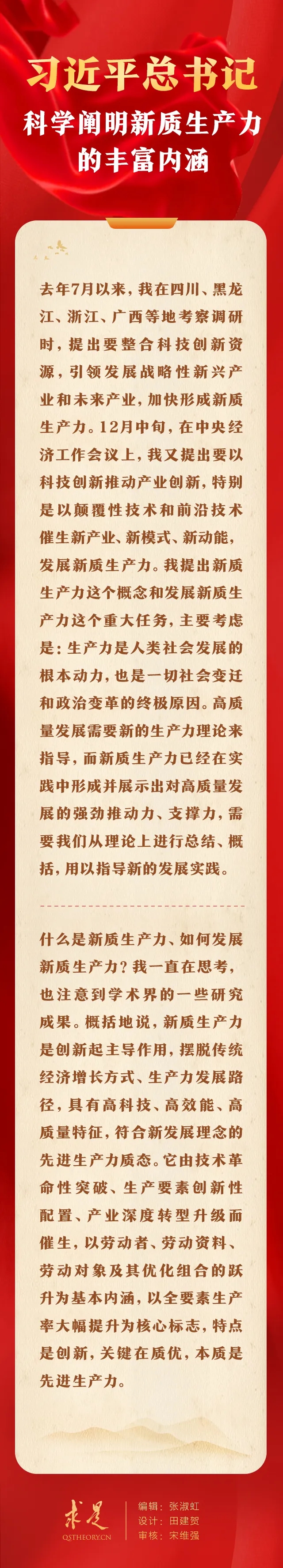 6月1日出版的第11期《求是》杂志刊发习近平总书记重要文章《发展新质生产力是推动高质量发展的内在要求和重要着力点》。在这篇重要文章中,习近平总书记深刻阐明了新质生产力的特征、基本内涵、核心标志、特点、关键、本质等基本问题。