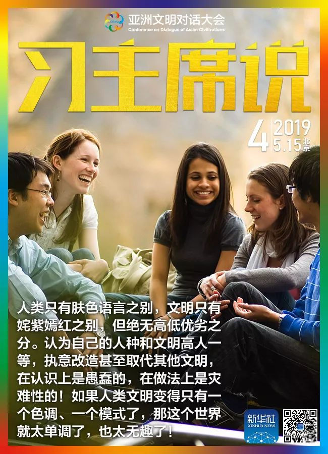 4.人类只有肤色语言之别,文明只有姹紫嫣红之别,但绝无高低优劣之分。认为自己的人种和文明高人一等,执意改造甚至取代其他文明,在认识上是愚蠢的,在做法上是灾难性的!如果人类文明变得只有一个色调、一个模式了,那这个世界就太单调了,也太无趣了!