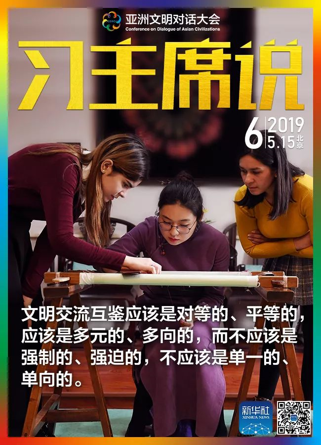 6. 文明交流互鉴应该是对等的、平等的,应该是多元的、多向的,而不应该是强制的、强迫的,不应该是单一的、单向的。