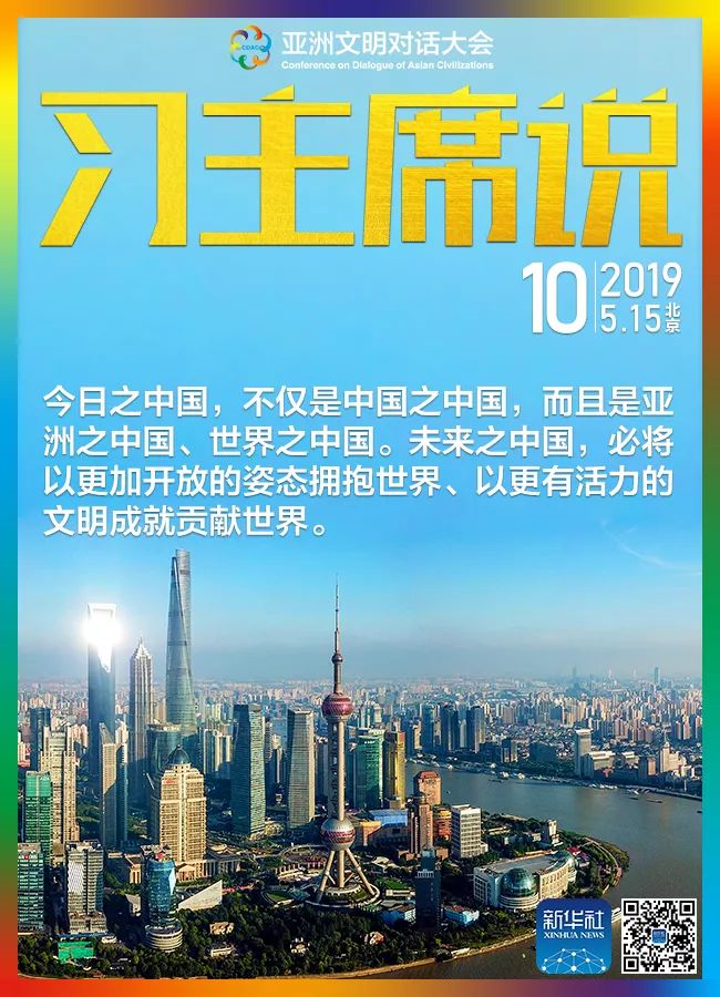 10. 今日之中国,不仅是中国之中国,而且是亚洲之中国、世界之中国。未来之中国,必将以更加开放的姿态拥抱世界、以更有活力的文明成就贡献世界。