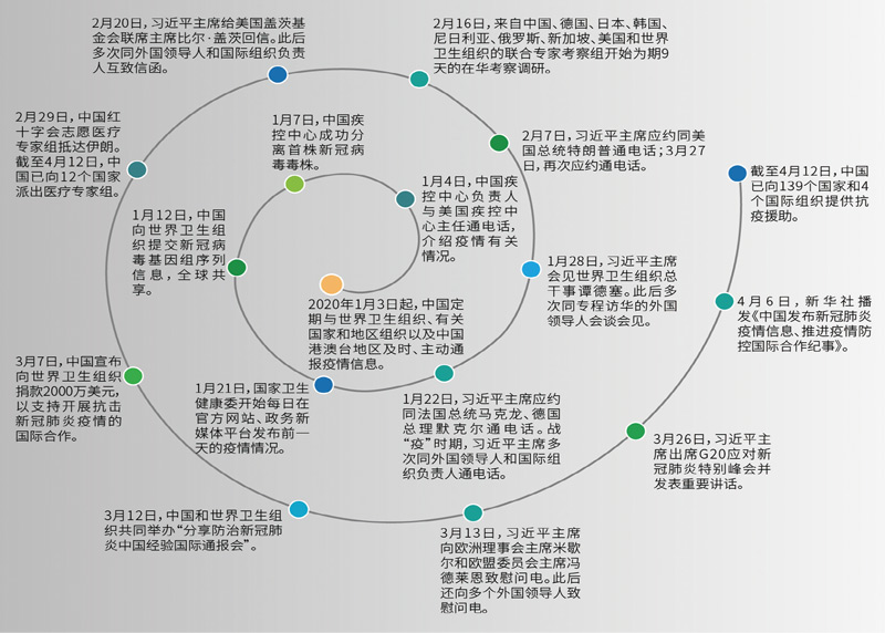 疫情发生以来,习近平总书记高度重视抗疫国际合作,从通电话到会见会谈,从致慰问电到给外方友好人士回信,在不同场合、以不同方式,反复、集中阐述中国主张。