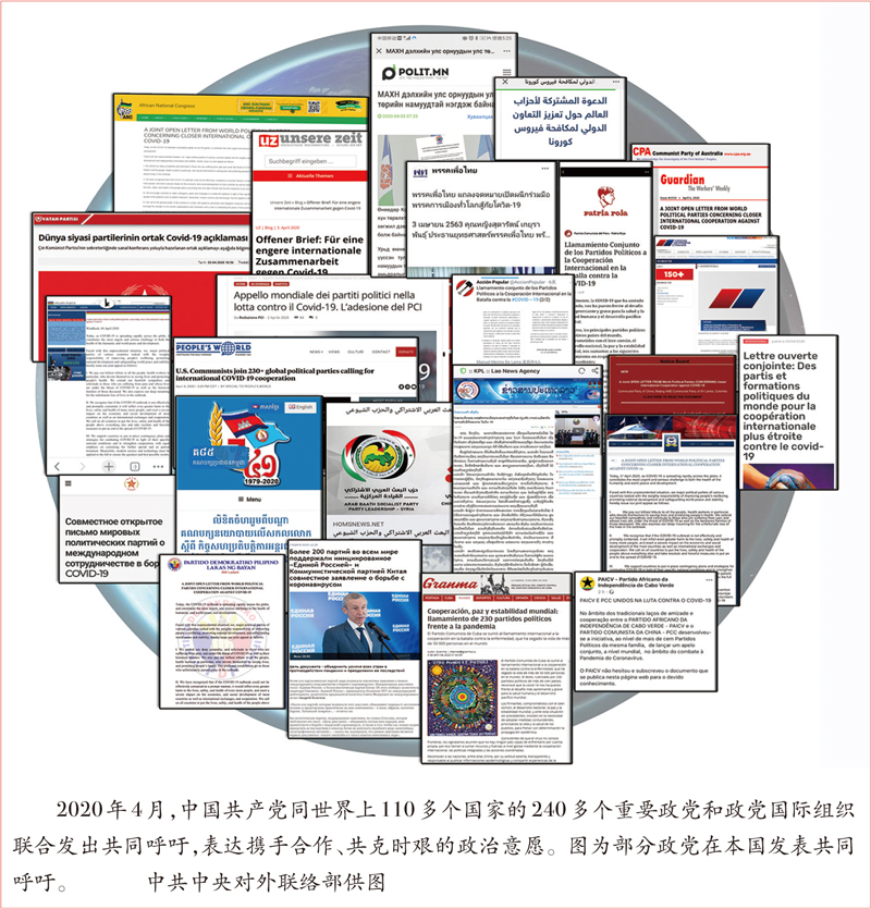 在我们党积极推动下,世界上110多个国家的240多个重要政党和政党国际组织联合发出共同呼吁,表达了携手合作、共克时艰的政治愿望,产生了良好的政治效果。
