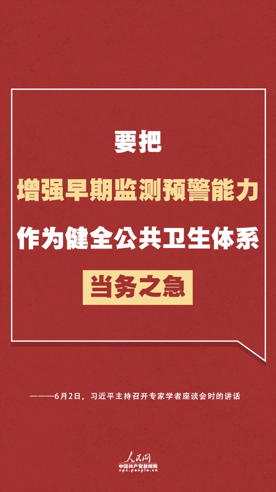 习近平强调,要把增强早期监测预警能力作为健全公共卫生体系当务之急。