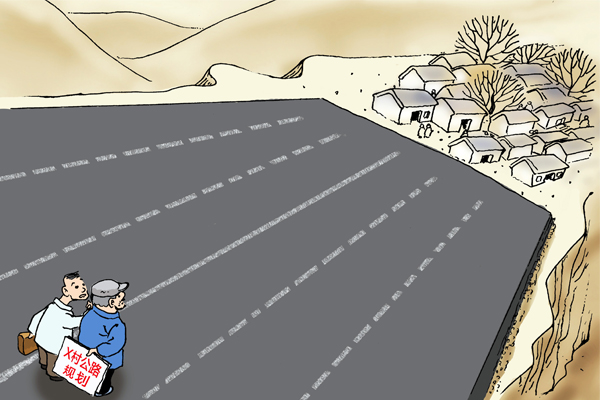 ——村长,咱村放哪儿? 画/刘晓亮