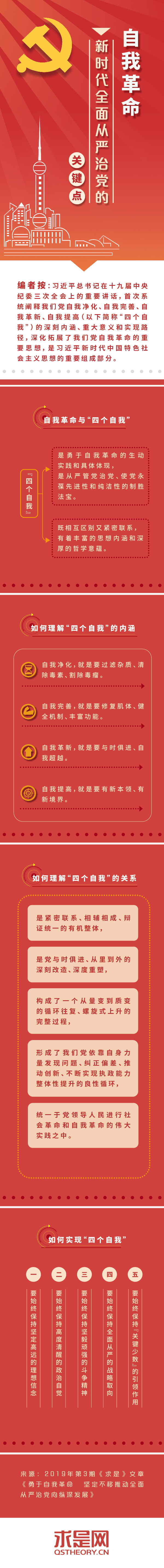 编者按:习近平总书记在十九届中央纪委三次全会上的重要讲话,首次系统阐释我们党自我净化、自我完善、自我革新、自我提高(以下简称“四个自我”)的深刻内涵、重大意义和实现路径,深化拓展了我们党自我革命的重要思想,是习近平新时代中国特色社会主义思想的重要组成部分。